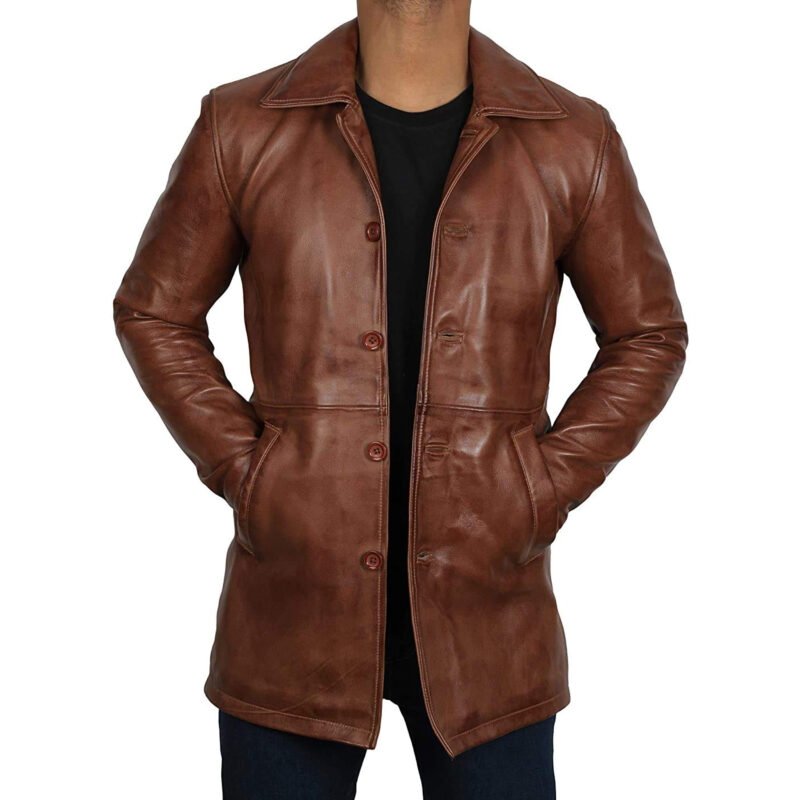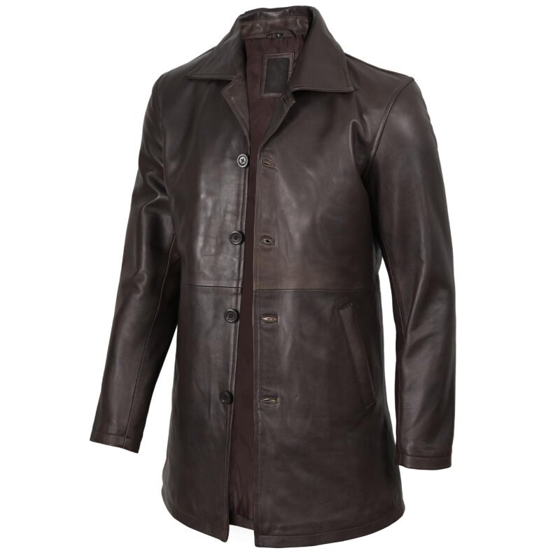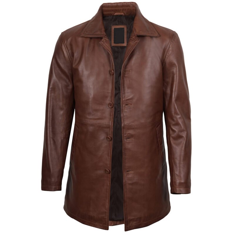 Men’s Real Lambskin Length Camel Brown Leather Coat