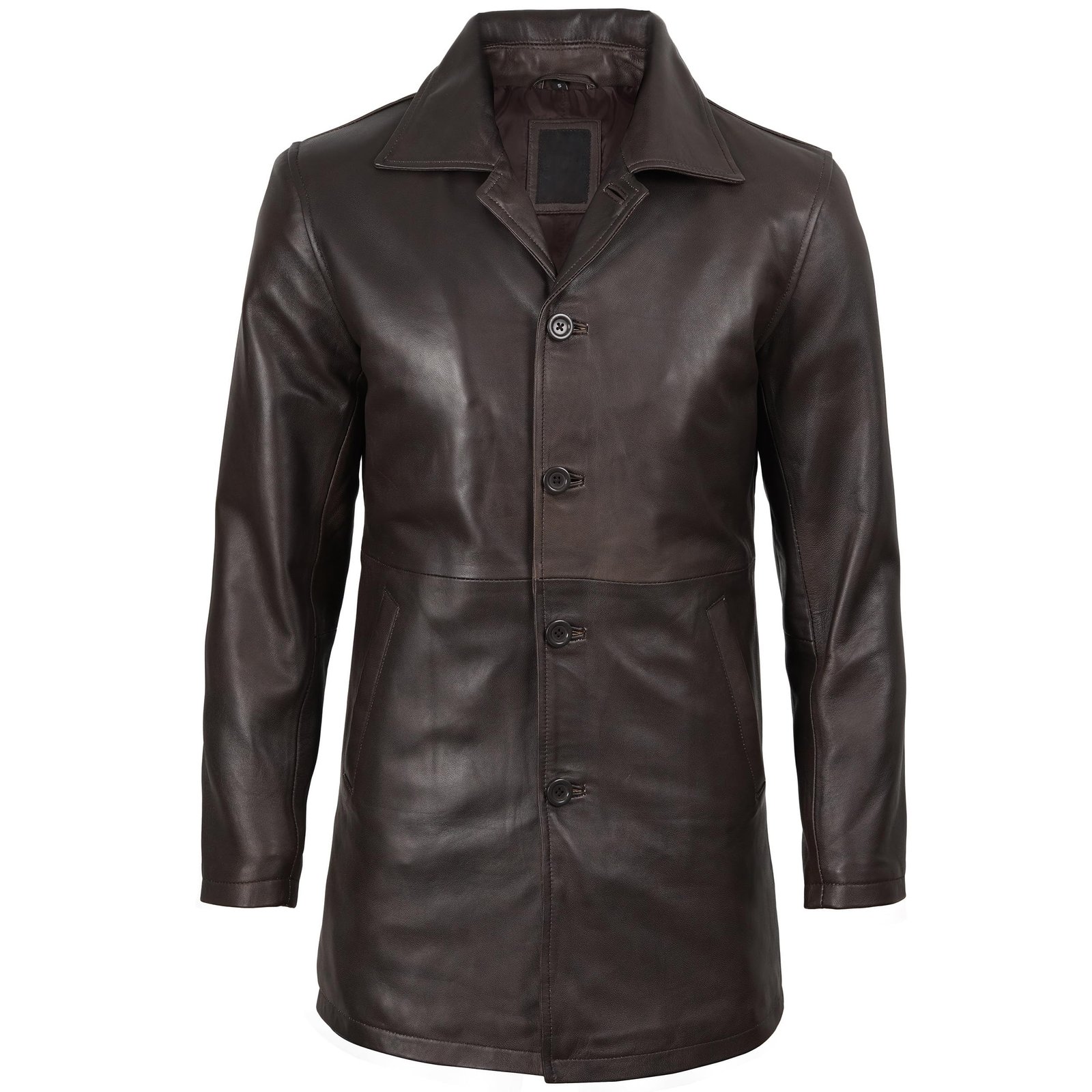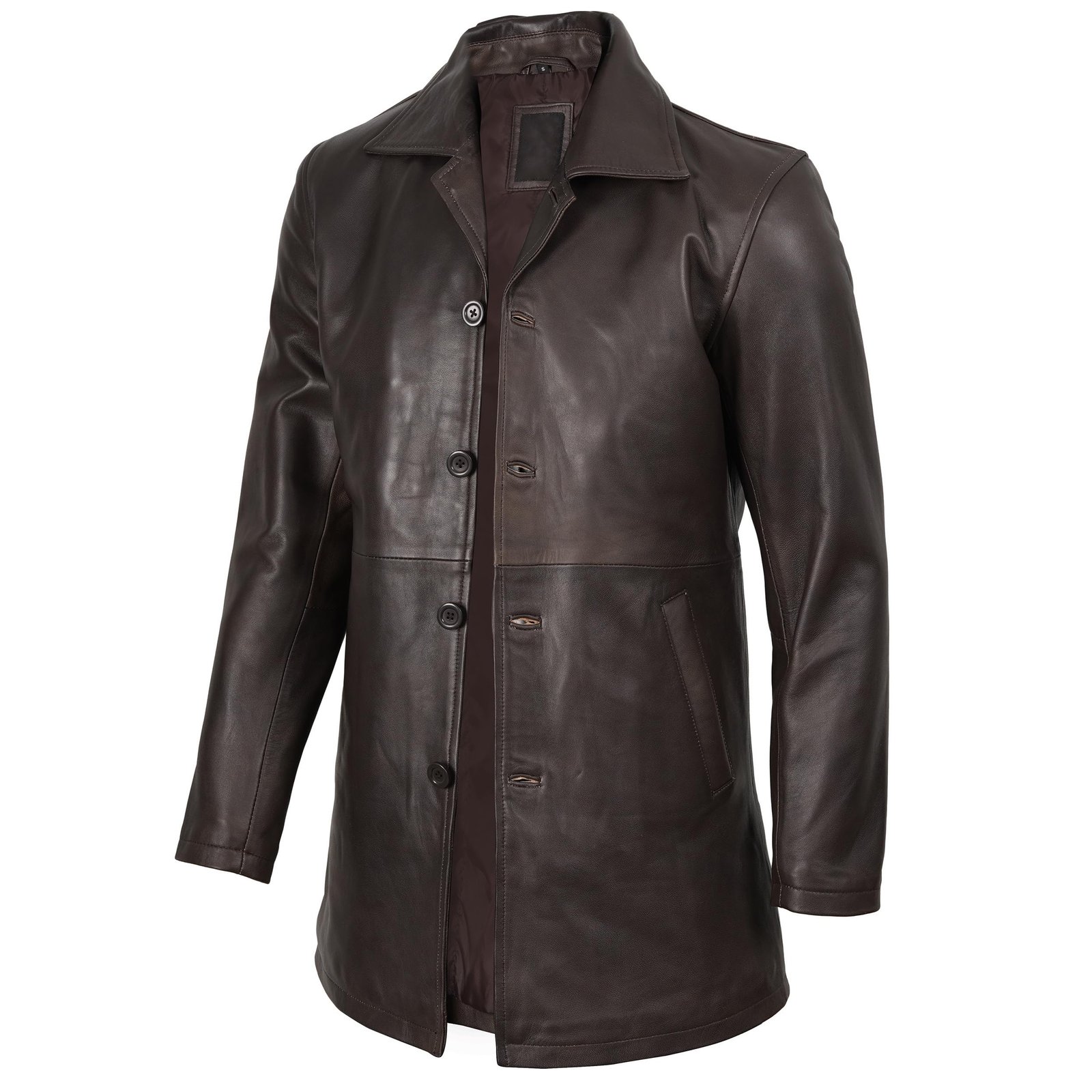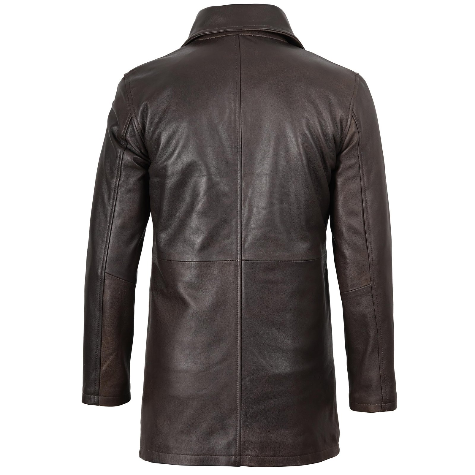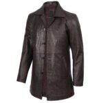Men’s Distressed Dark Brown Leather Car Coat