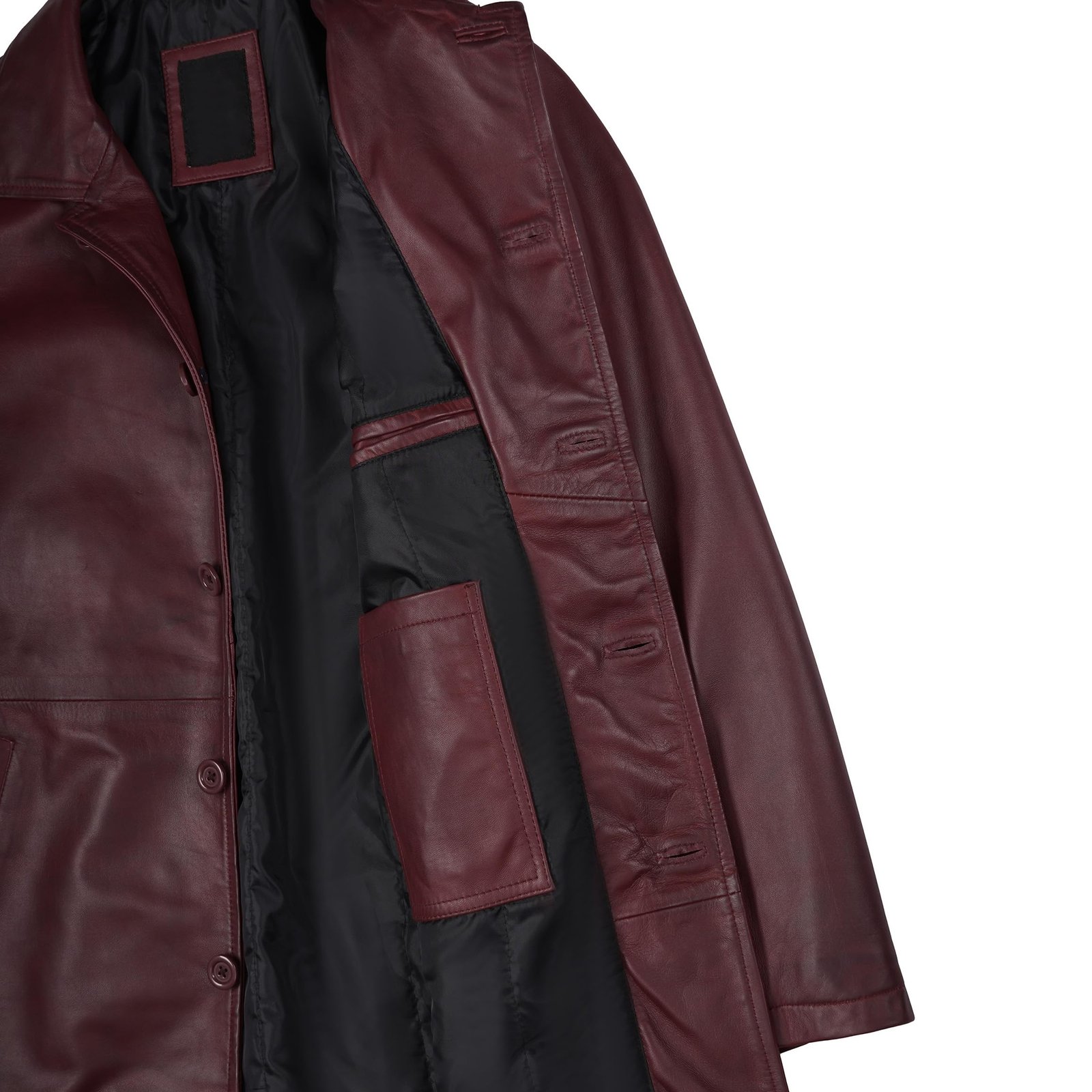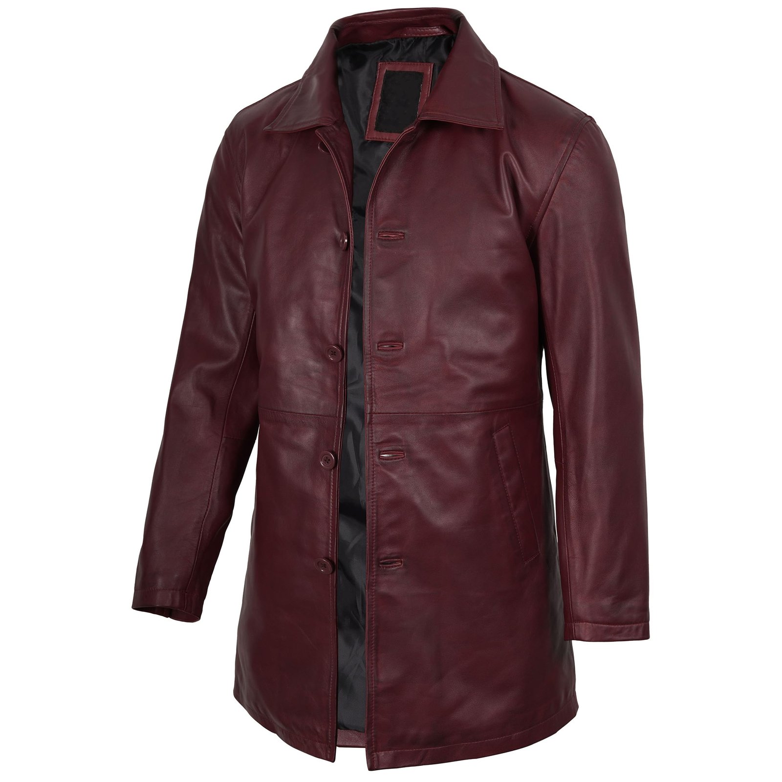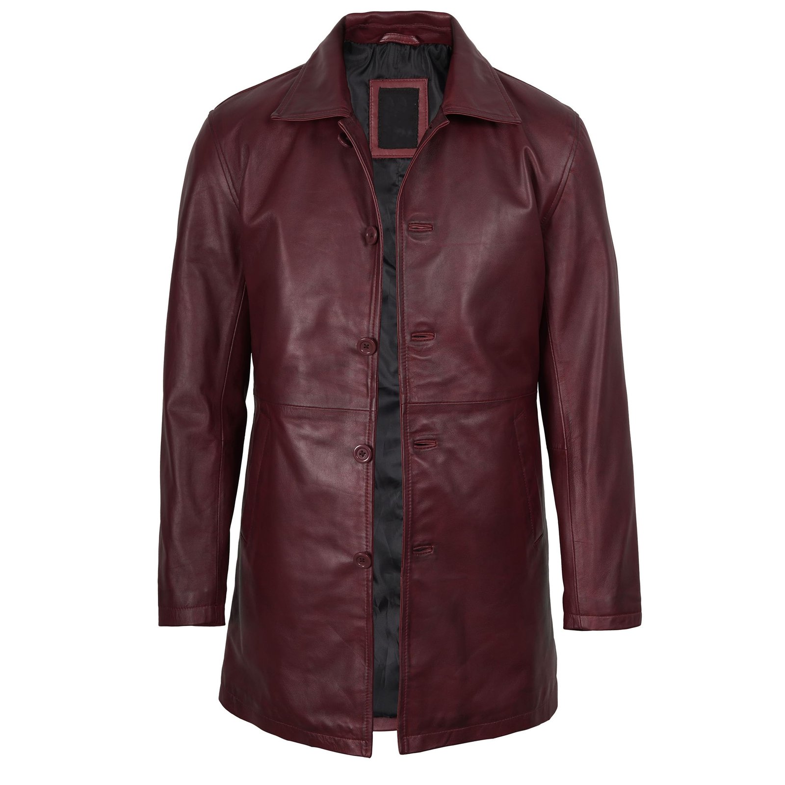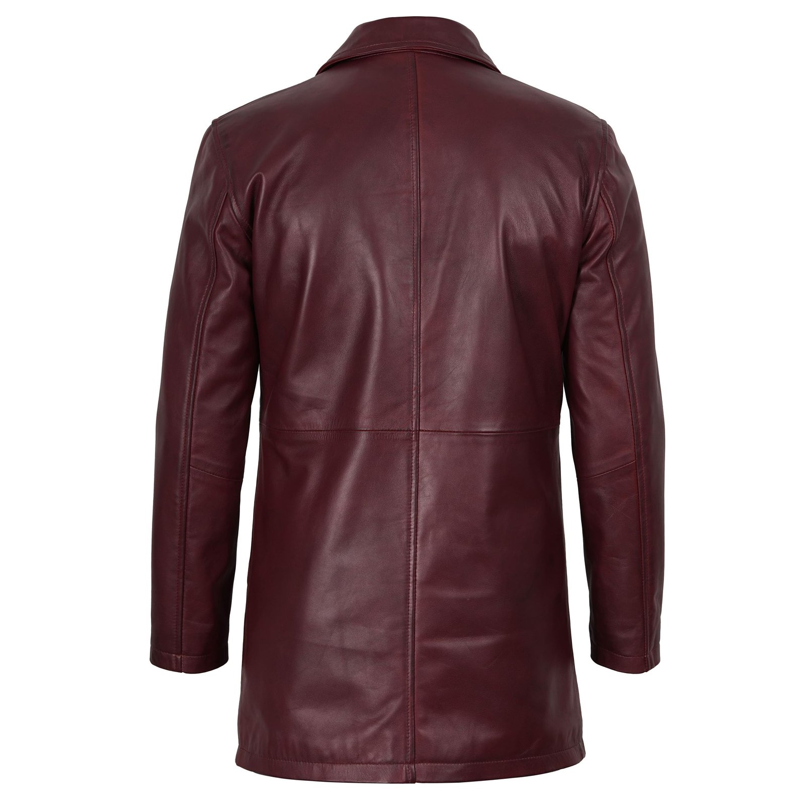 Men’s Real Leather Length Maroon Coat